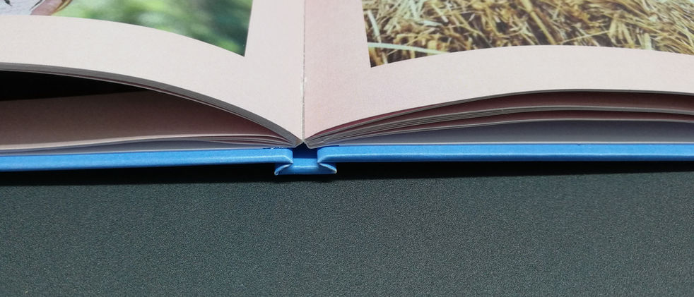 Encuadernación con apertura de 180˚, visión total de las fotos. En tapa rígida con un grosor de 2 mm. Lomo cuadrado